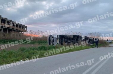 Λάρισα: Σοβαρό τροχαίο – Νταλίκα τούμπαρε δίπλα στον δρόμο