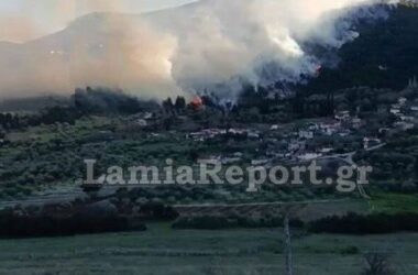Φθιώτιδα: Μεγάλη φωτιά στη Μενδενίτσα – Άνεμοι 6 μποφόρ στην περιοχή