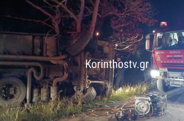 Κόρινθος: Επιχείρηση απεγκλωβισμού οδηγού νταλίκας που ανατράπηκε