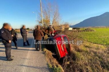 Λαμία: Τροχαίο ατύχημα με αυτοκίνητο που ανετράπη κοντά στο Λιανοκλάδι