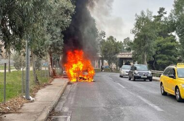 Αυτοκίνητο τυλίχθηκε στις φλόγες στην είσοδο της Συγγρού από Πειραιά (pics)