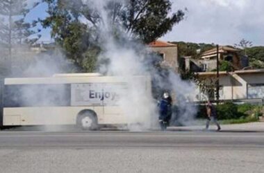 Φωτιά σε αστικό λεωφορείο στα Χανιά