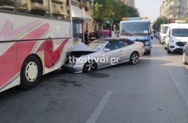 Σοβαρό τροχαίο στη Θεσσαλονίκη: Αυτοκίνητο «καρφώθηκε» σε λεωφορείο