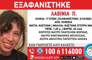 Χαμόγελο του Παιδιού: Εξαφάνιση της 17χρονης Λαβίνιας Π. από την περιοχή της Κηφισιάς Στις 02/10/2022 και...