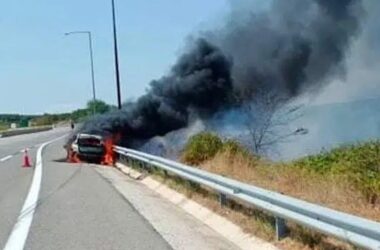 Παλαιά Εθνική Οδός Πατρών – Αθηνών: Αυτοκίνητο τυλίχθηκε στις φλόγες – Κινητοποίηση των αρχών