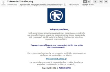 Προσοχή: Nέο email απάτη δήθεν από την Alpha Bank