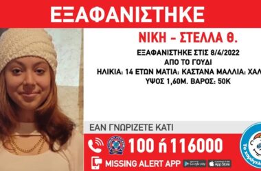 Εξαφάνιση της 14χρονης Νίκης – Στέλλας Θ. στο Γουδή την Παρασκευή (8/4) Η 14χρονη Νίκη – Στέλλα...
