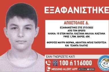 Για την εξαφάνιση του 15χρονου  ενεργοποιήθηκε το missing alert Σε εξέλιξη βρίσκονται οι έρευνες για τον εντοπισμό...
