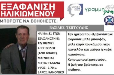Εισαγγελική παρέμβαση υπήρξε, για έναν 81χρονο, που που εξαφανίστηκε στις 21 Οκτωβρίου 2021 από τον Βόλος...