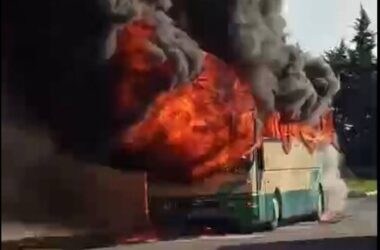 Καβάλα: Βίντεο από τη στιγμή που λεωφορείο των ΚΤΕΛ τυλίγεται στις φλόγες