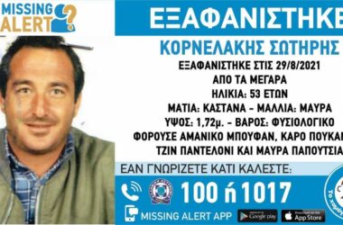 Συναγερμός σήμανε στα Μέγαρα για την εξαφάνιση του Σωτήρη Κορνελάκη, 53 ετών. Σημειώνεται ότι τα ίχνη...